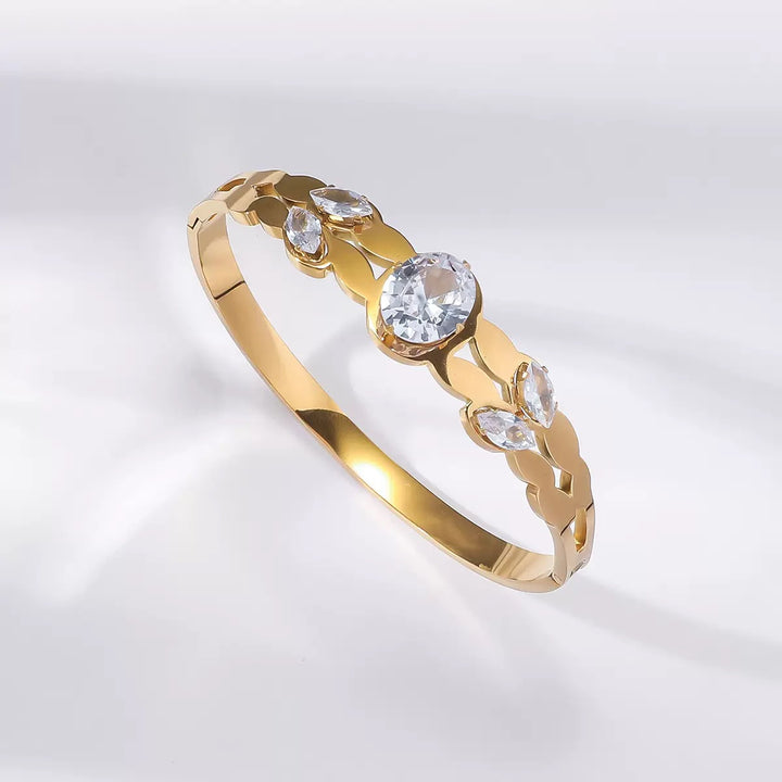 18K Gold Filled Over Stainless Steel Bangle With Cubic Zircon