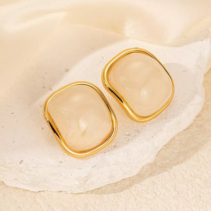 Cream Resin Square Shape 18K Gold Filled Ear Studs