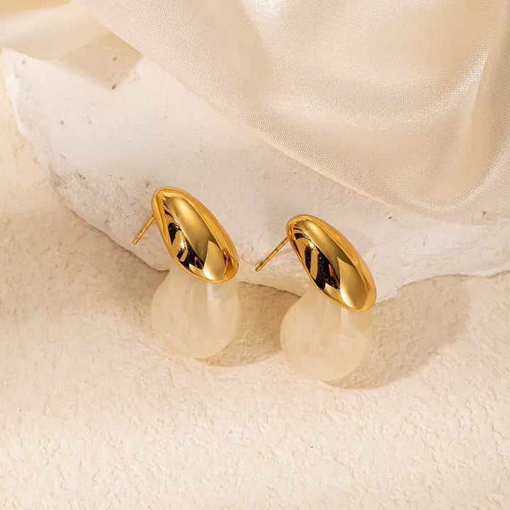 Cream Resin Water Drop 18K Gold Filled Ear Studs