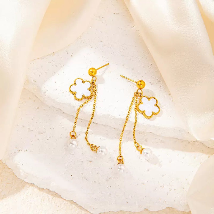 Flower Dangle 18K Gold Filled Ear Studs With Pearl
