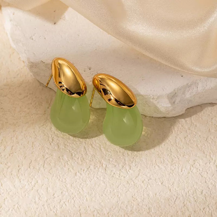 Green Resin Water Drop 18K Gold Filled Ear Studs
