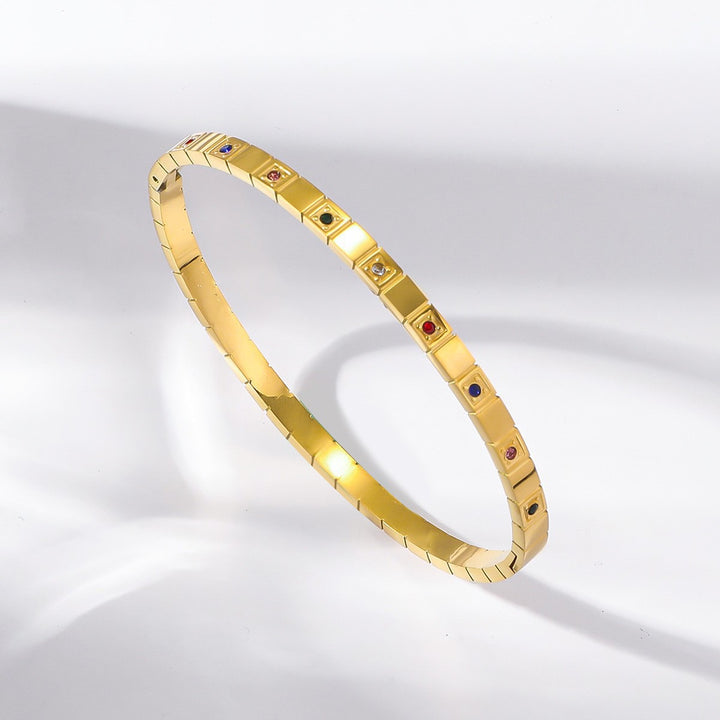 Multicolor 18K Gold Filled Over Stainless Steel Bangle With Cubic Zircon