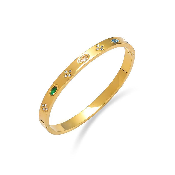 Multicolor 18K Gold Filled Over Stainless Steel Bangle With Cubic Zircon